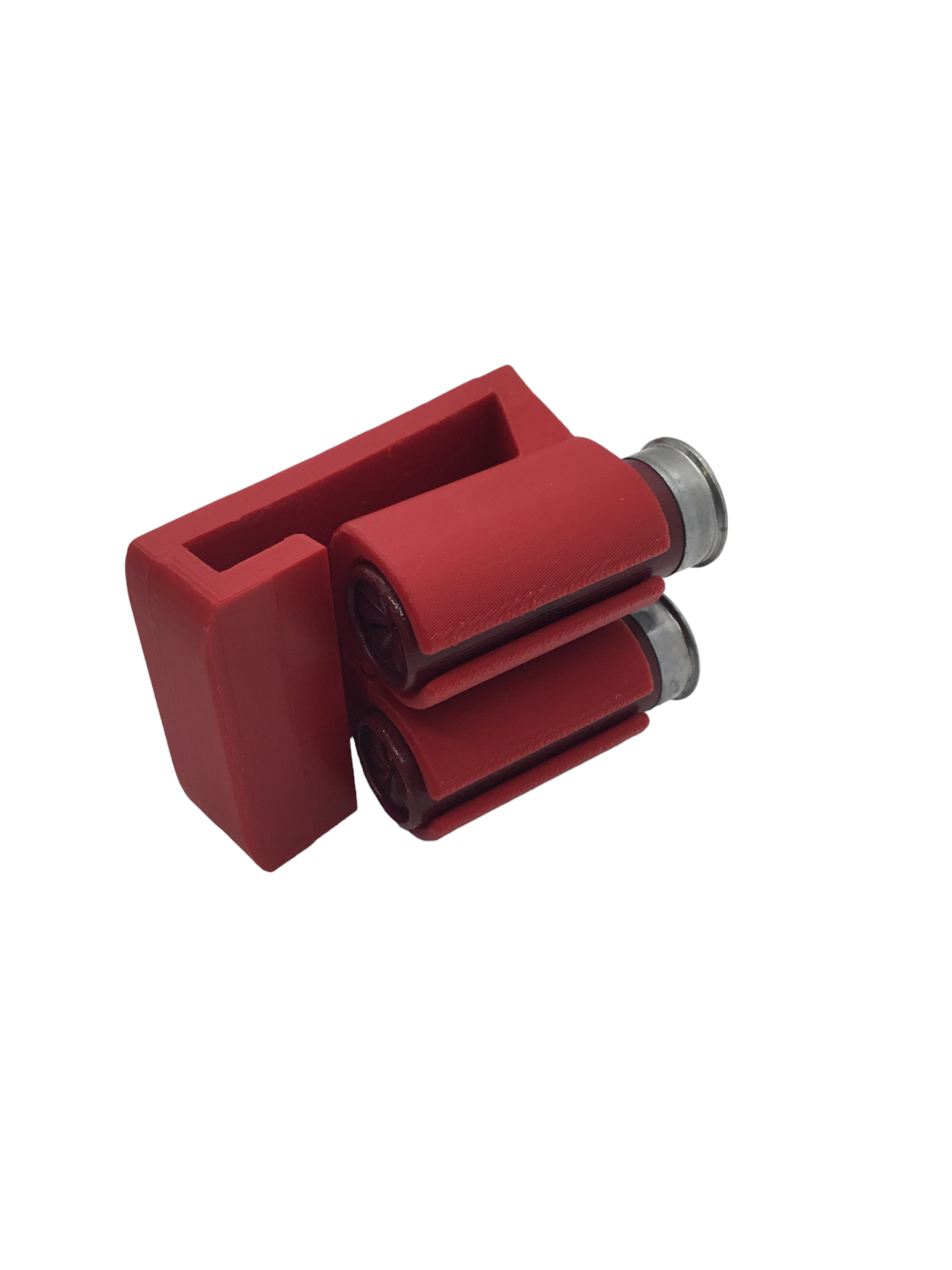 Clip this Sturdy Solid piece to any Belt, Pants or Vest for rapid deployment of up to 2 Shots.