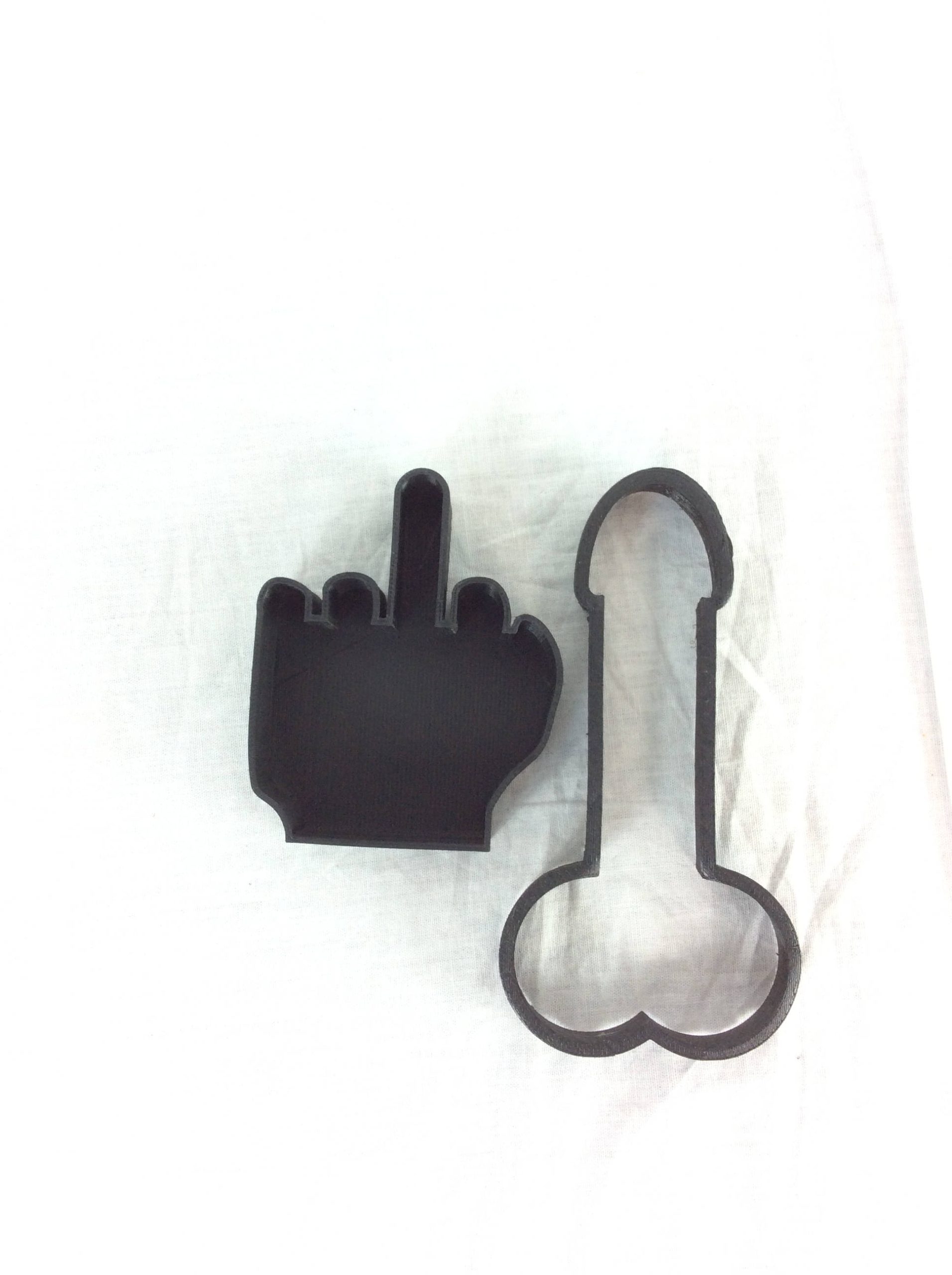 You will get the two Cutter Package deal which consist of the “Bake A Boner” Penis Cookie Cutter and The “Tell your boss how you really feel” Middle finger Cookie Cutter.