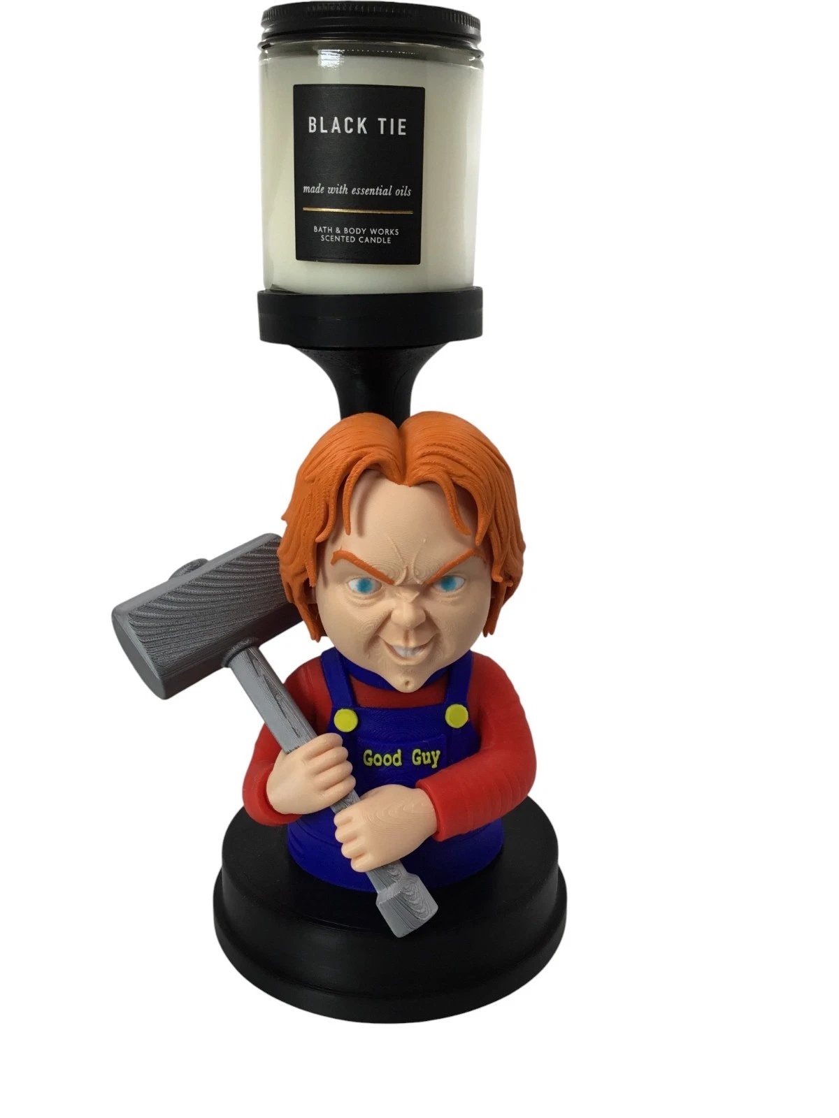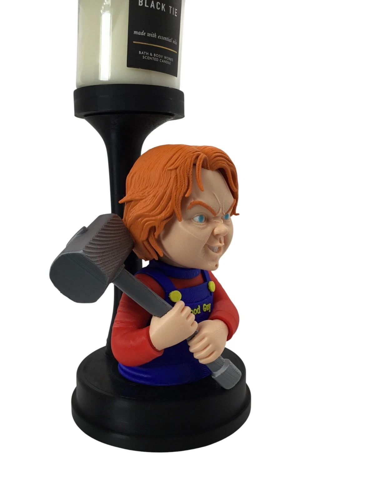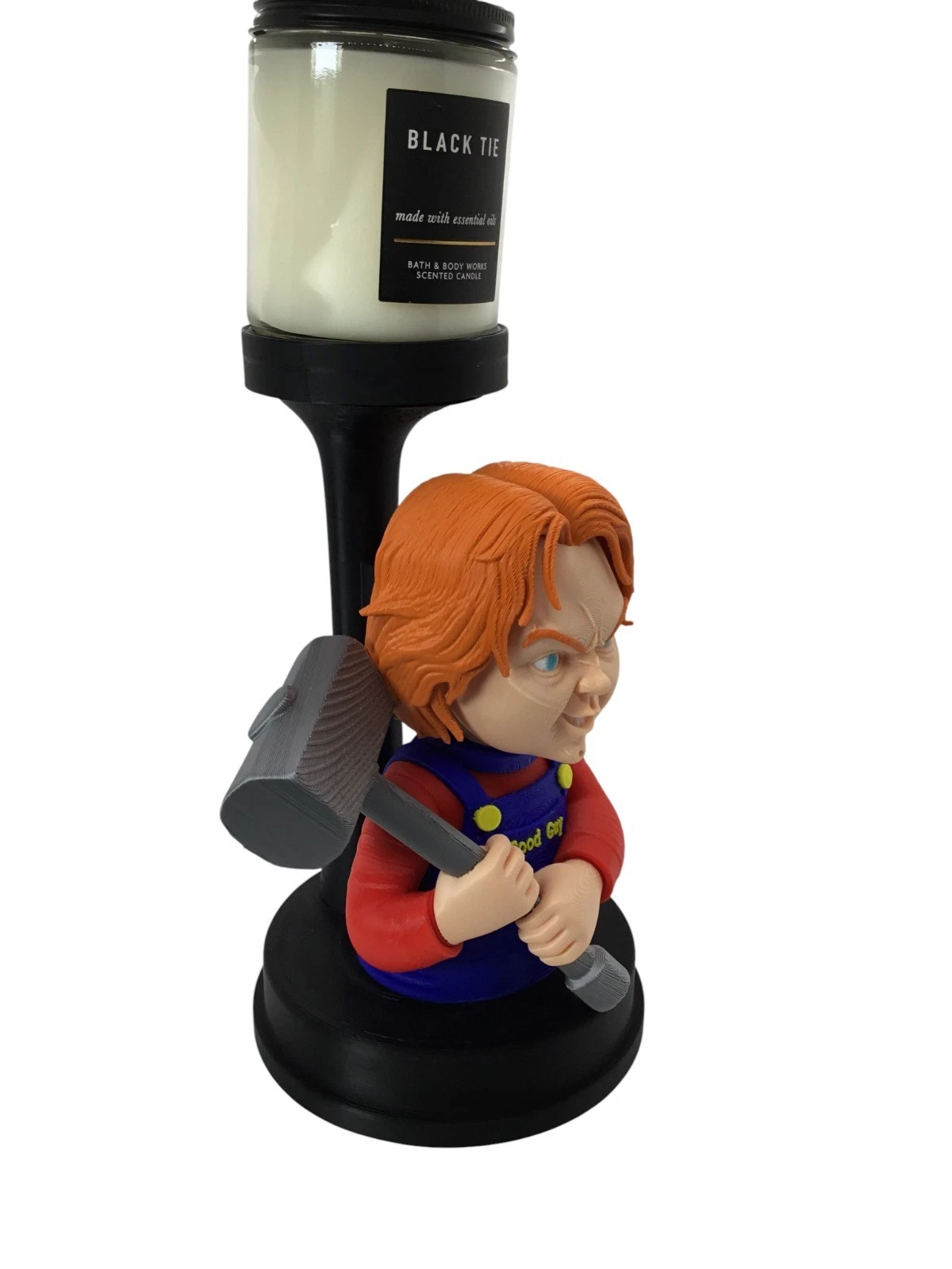 Chucky, ChildsPlay, HorrorDecor, CandleHolder, MovieProp, SlasherFan, HalloweenDisplay, CreepyHomeDecor, GoodGuyDoll, HorrorGift, GothicDecor, CandleStand, KillerDoll