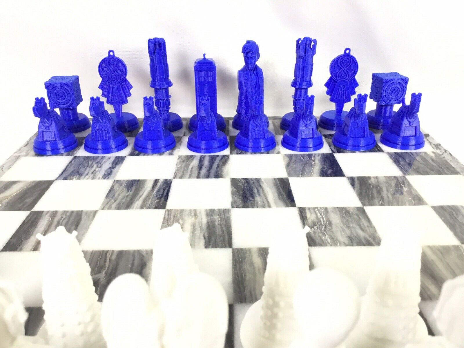 Doctor Who (FAN ART) Chess Set Tardis, Cyberman, Dalek, Weeping Angels, Dr Who