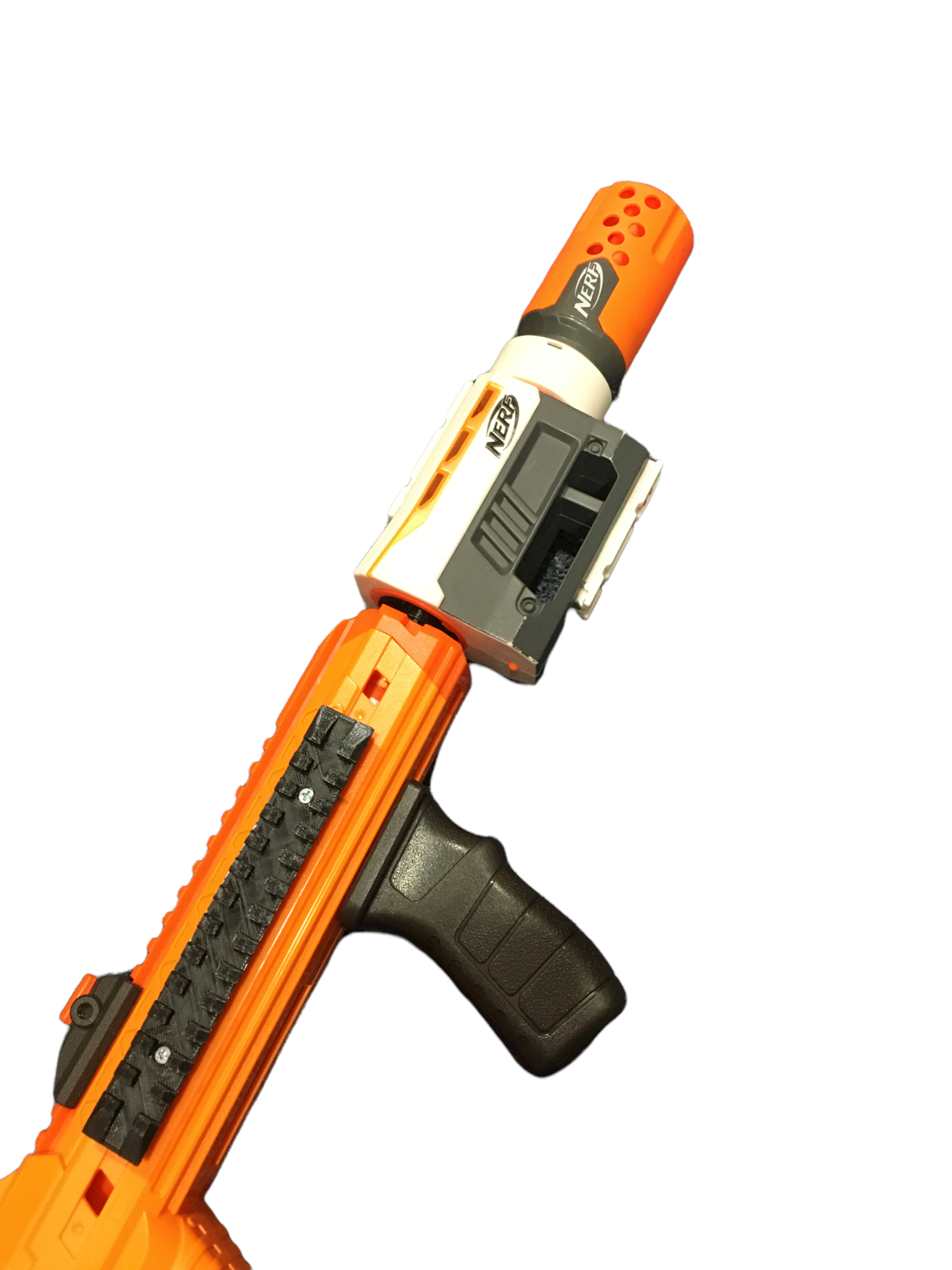 No modding needed, simply insert into the barrel and attach what ever you like. For a more secure attachment, you might want to insert some tape over time to the part that inserts into the barrel to allow for an extreme security. Not needed, simply recommended.