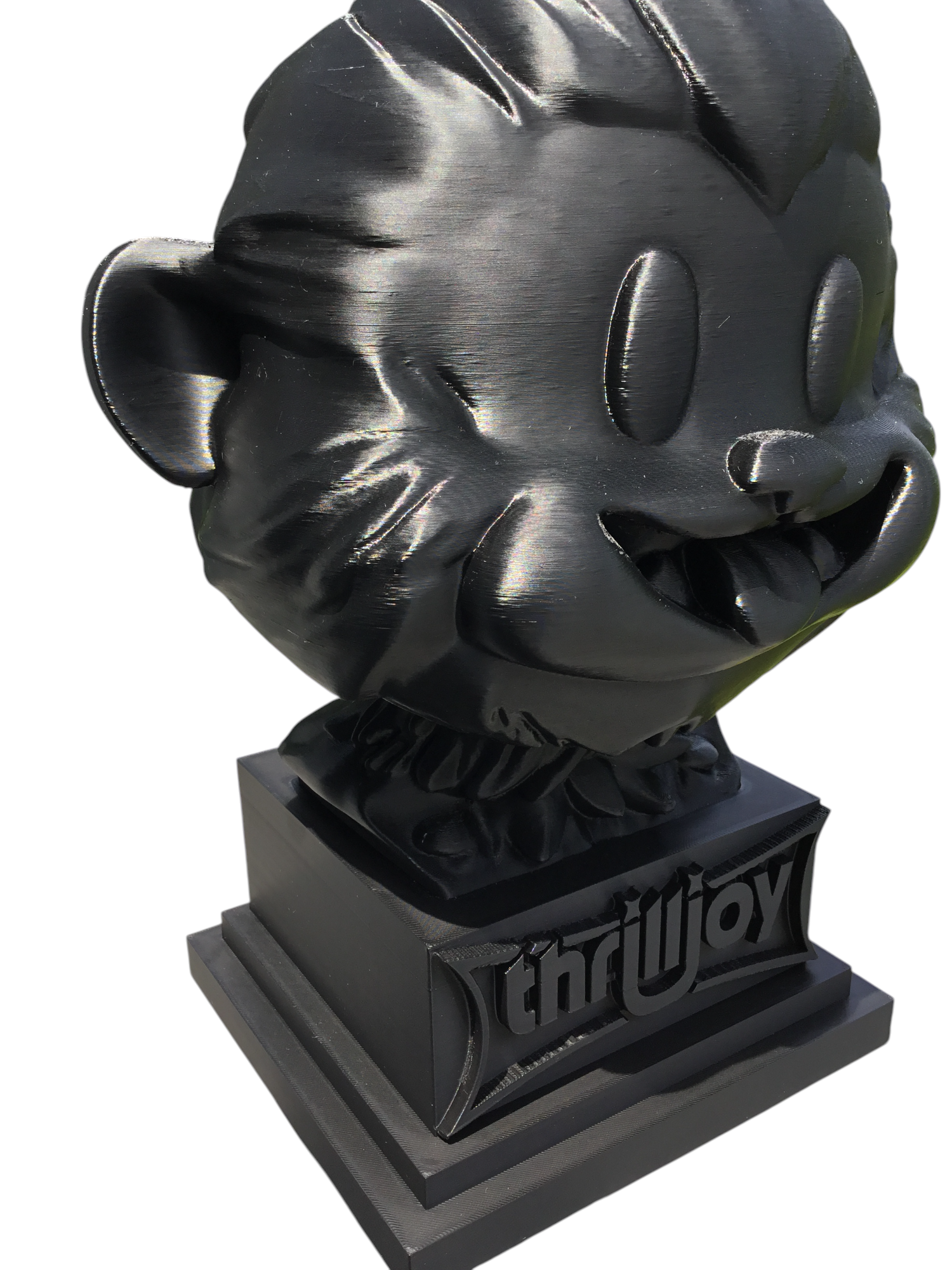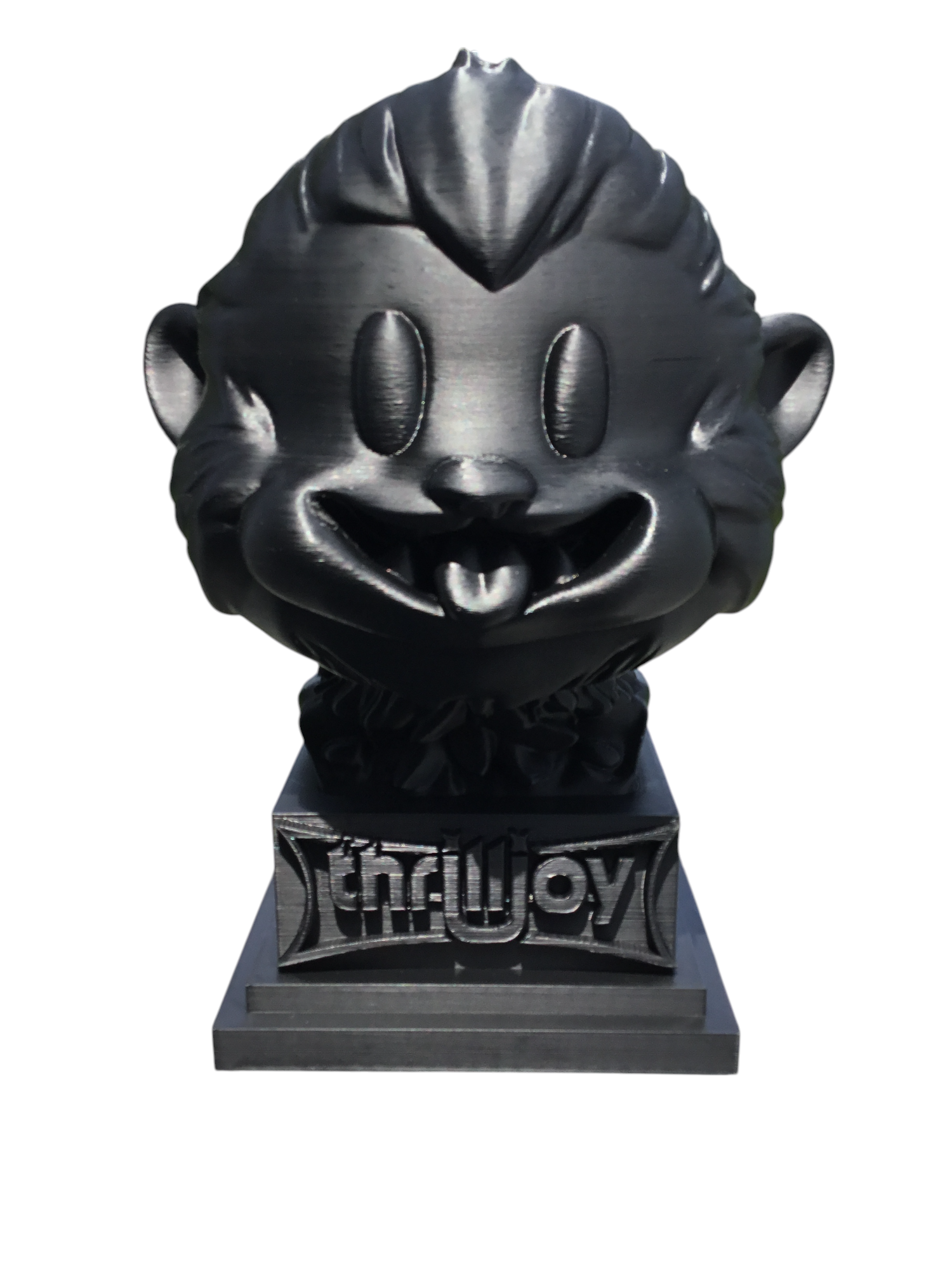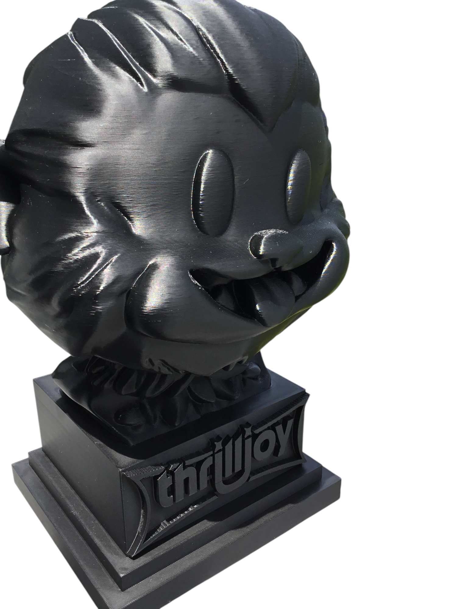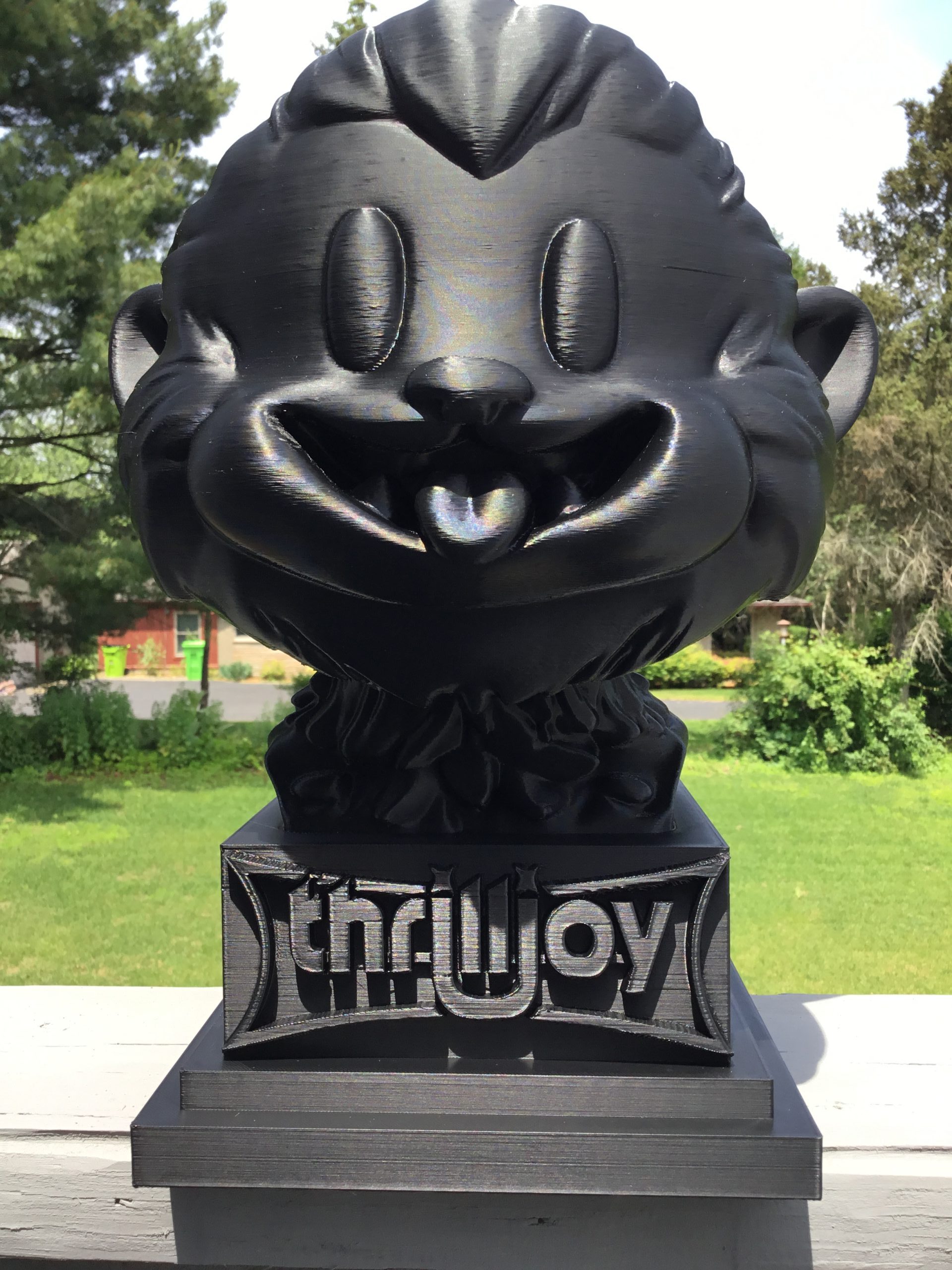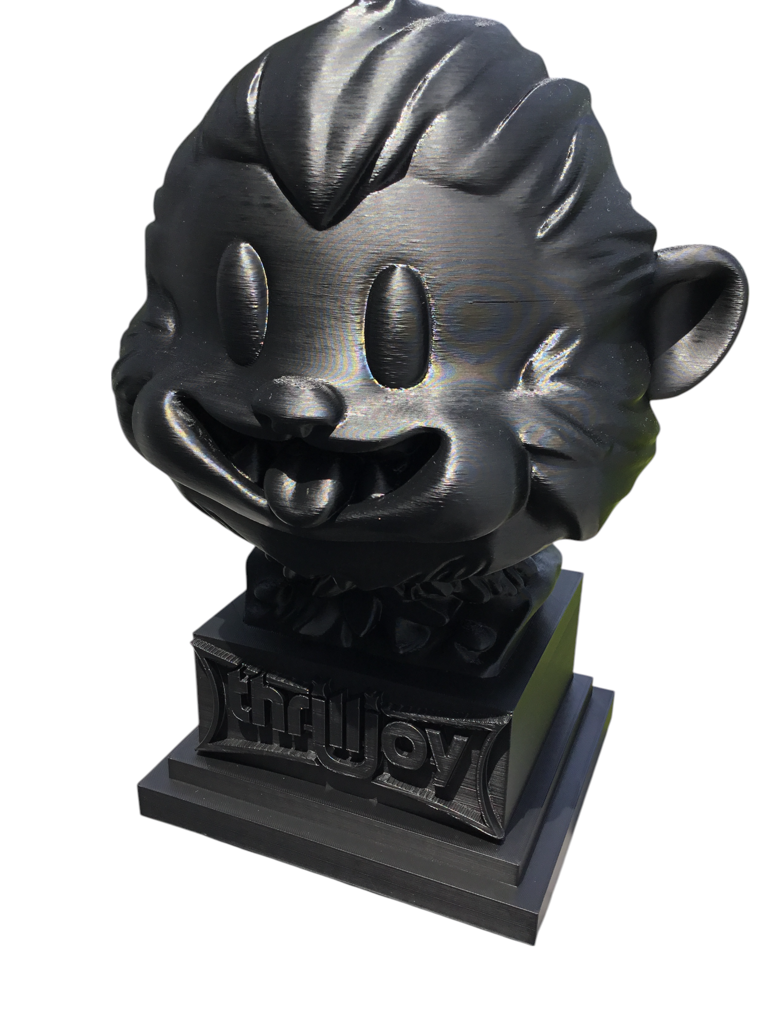 thrilljoy statue,designer toy bust,pop art sculpture,vinyl art toy,urban vinyl figure,black bust statue,large character statue,cartoon art toy,graffiti toy art,street art decor,limited edition bust,collectible sculpture,modern display statue