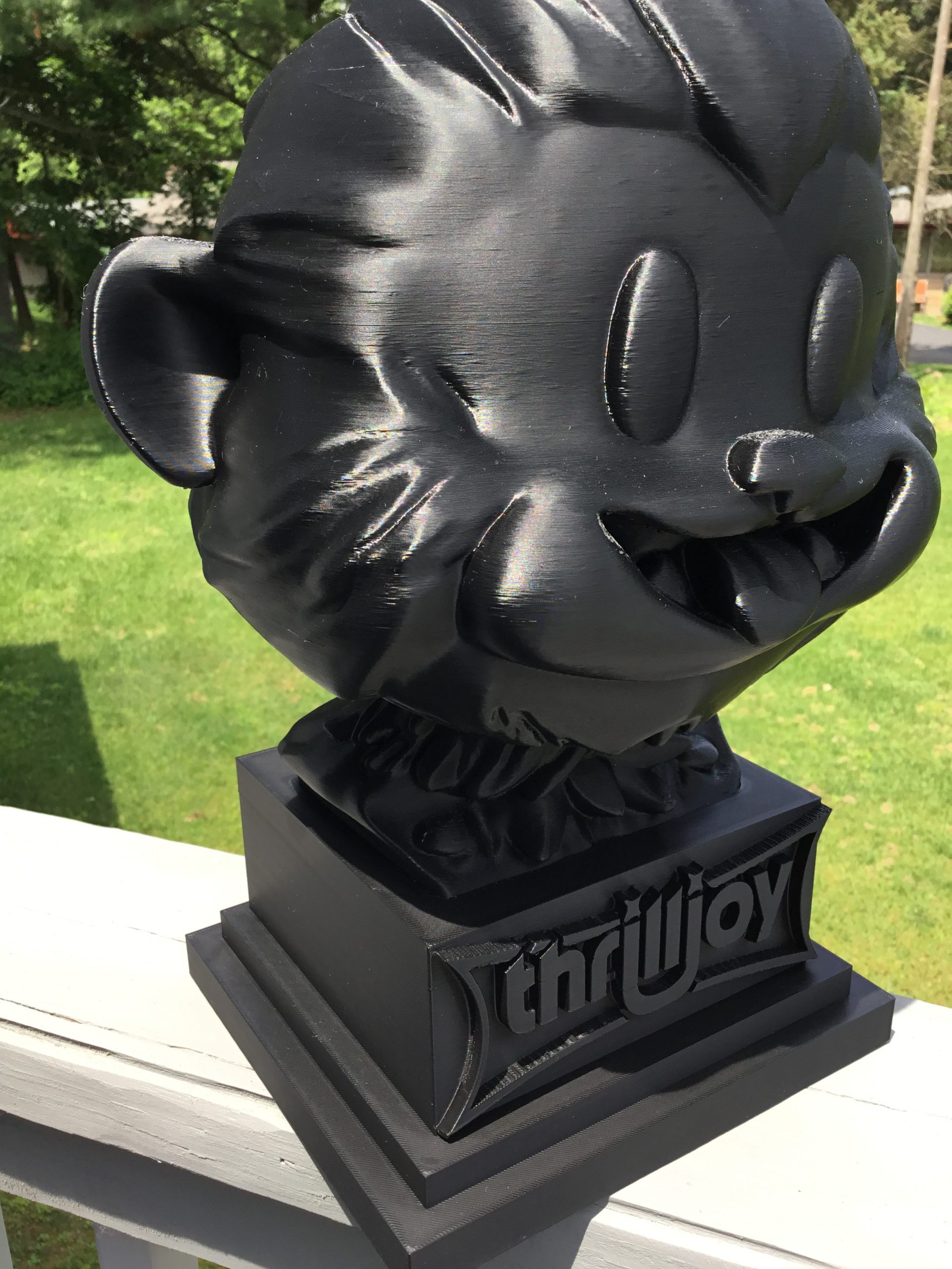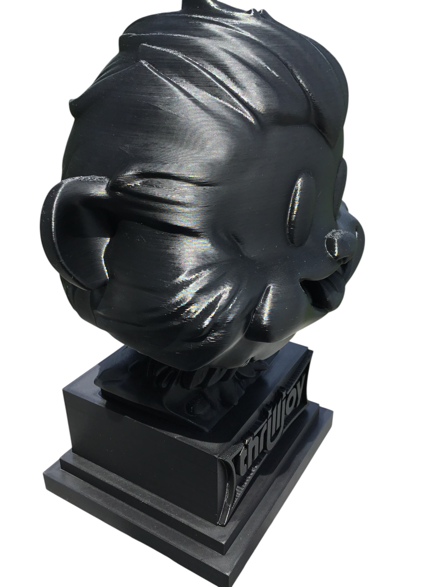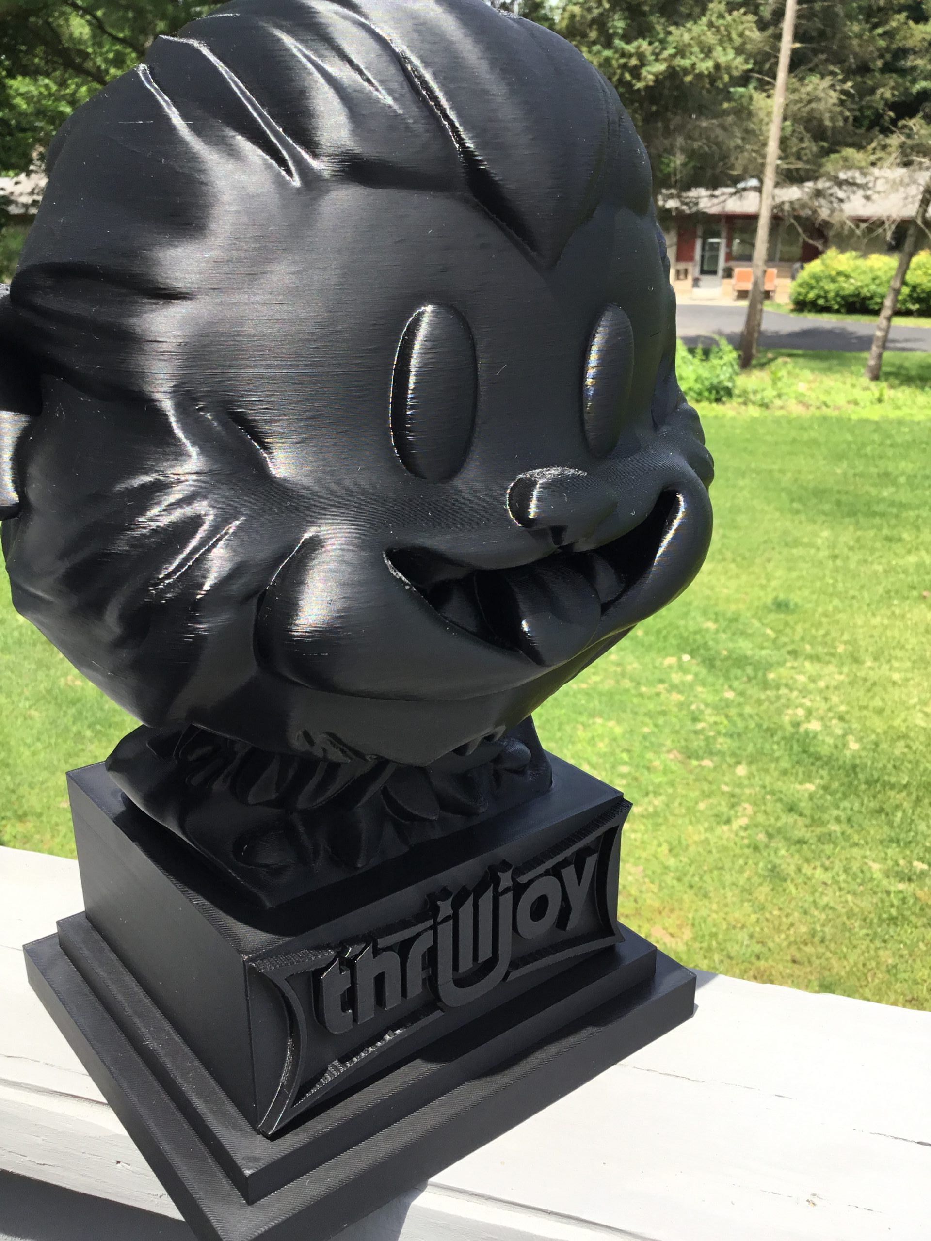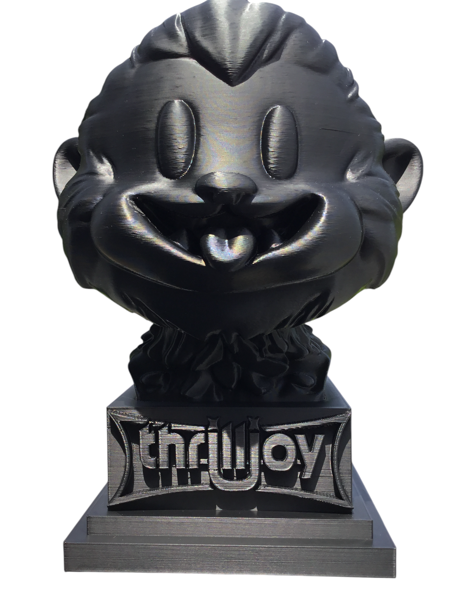 thrilljoy statue,designer toy bust,pop art sculpture,vinyl art toy,urban vinyl figure,black bust statue,large character statue,cartoon art toy,graffiti toy art,street art decor,limited edition bust,collectible sculpture,modern display statue