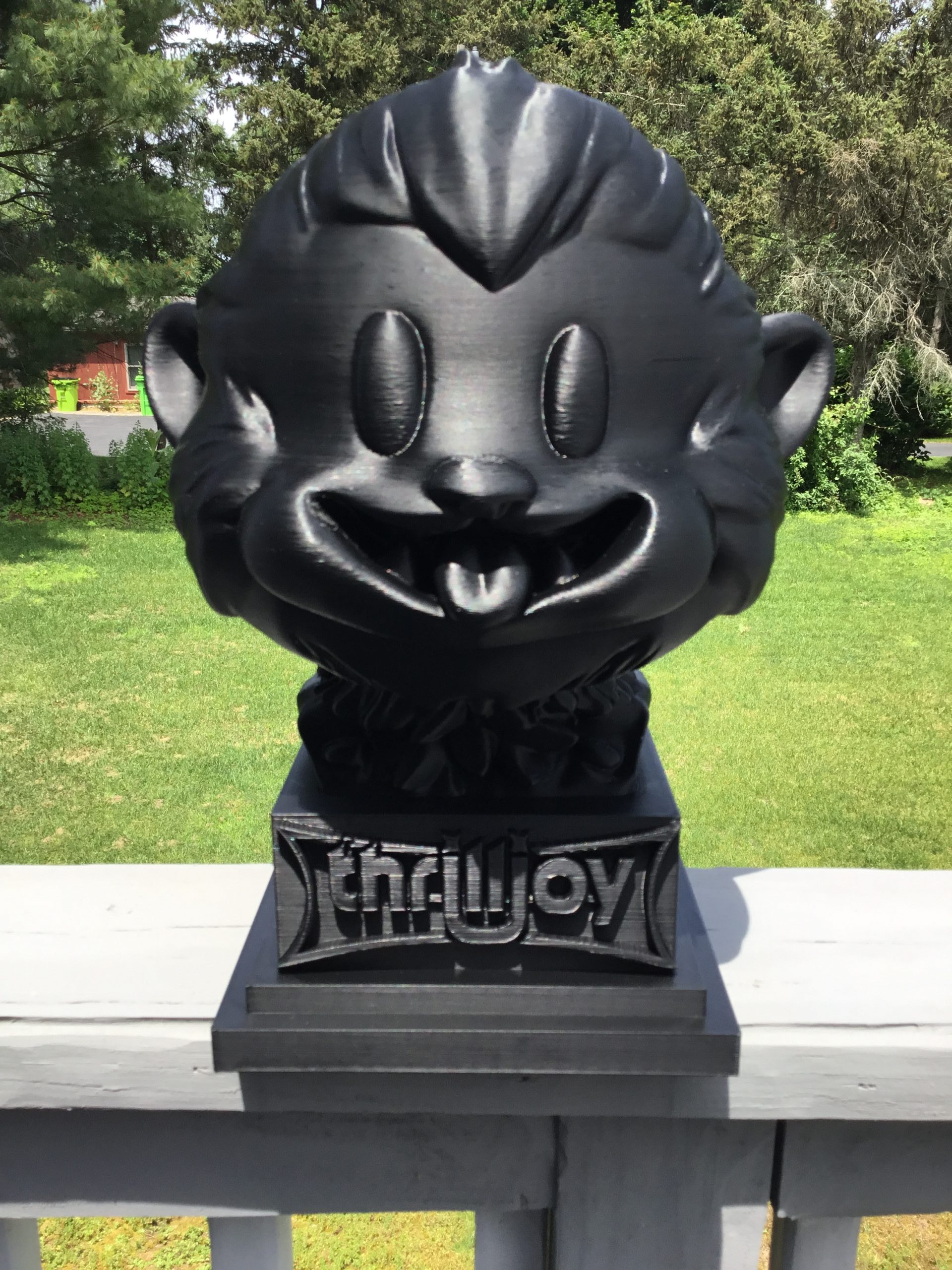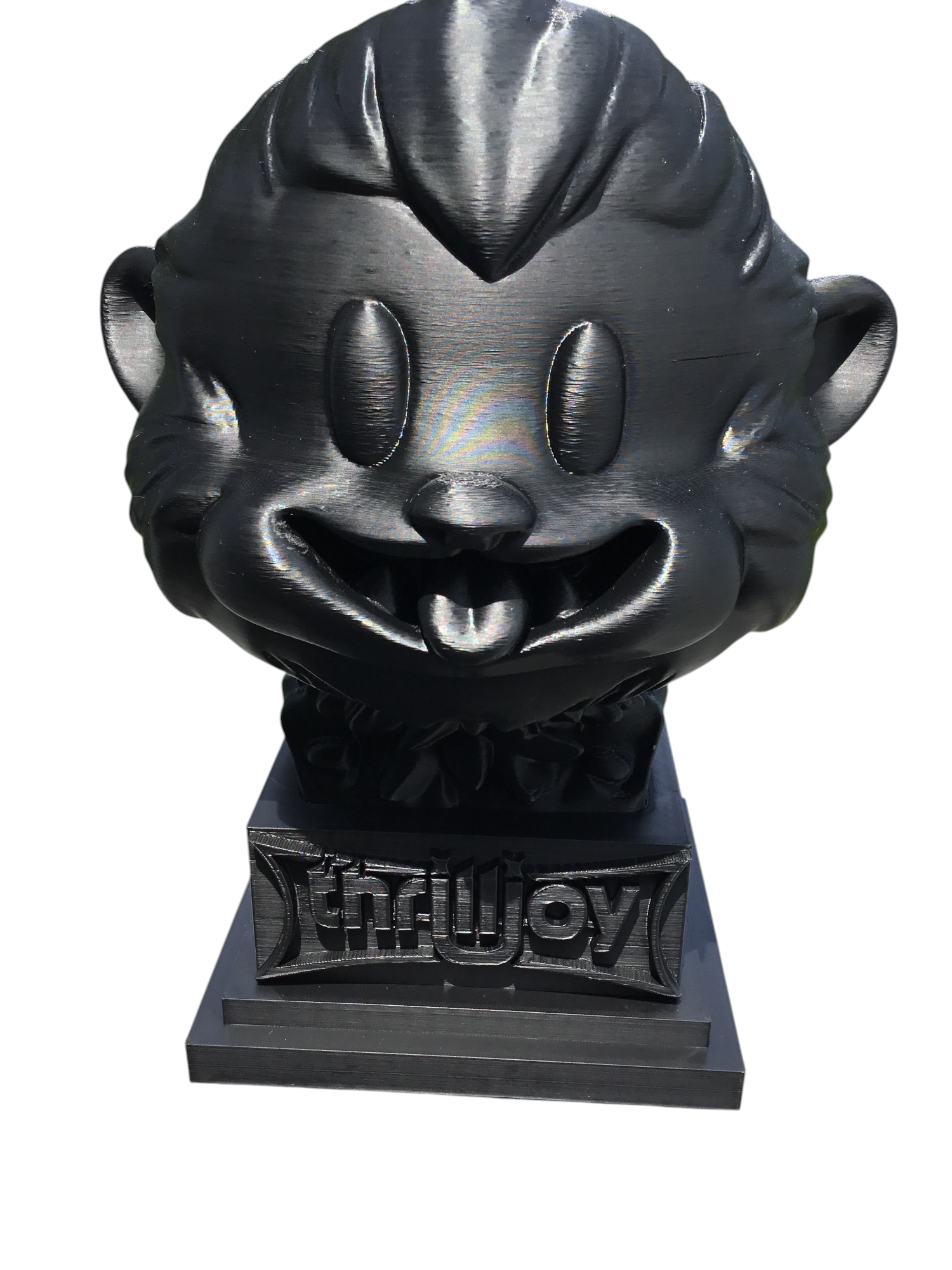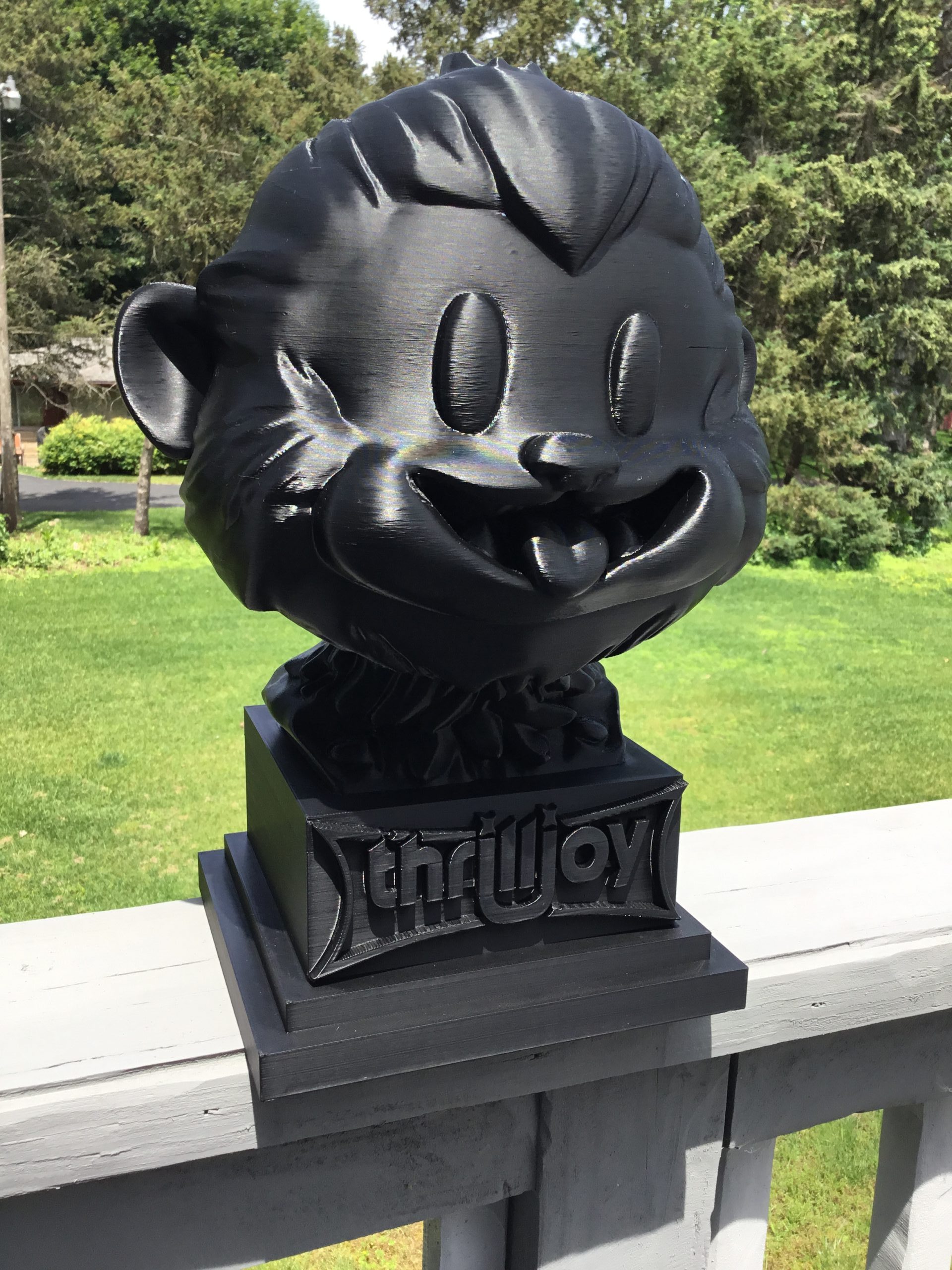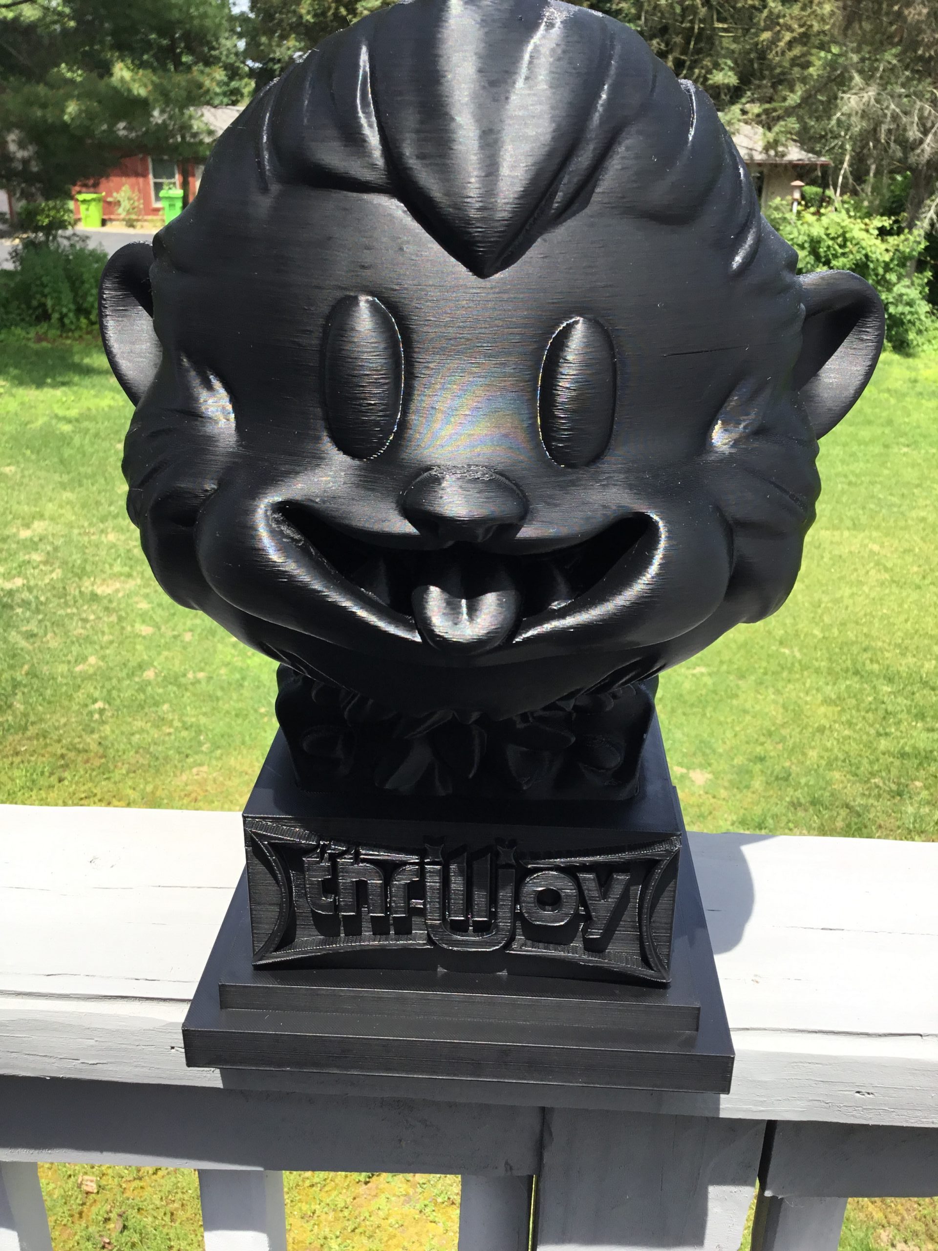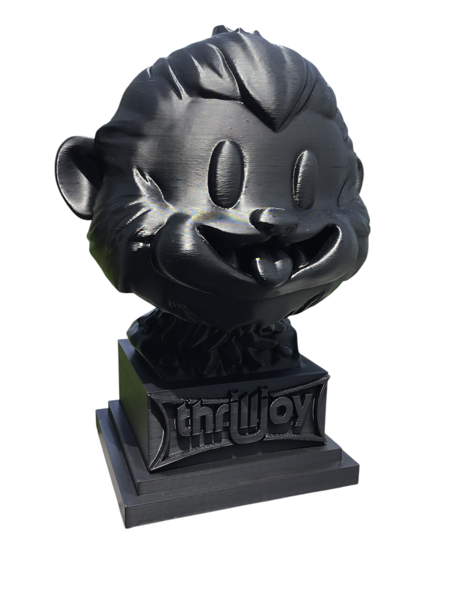 thrilljoy statue,designer toy bust,pop art sculpture,vinyl art toy,urban vinyl figure,black bust statue,large character statue,cartoon art toy,graffiti toy art,street art decor,limited edition bust,collectible sculpture,modern display statue