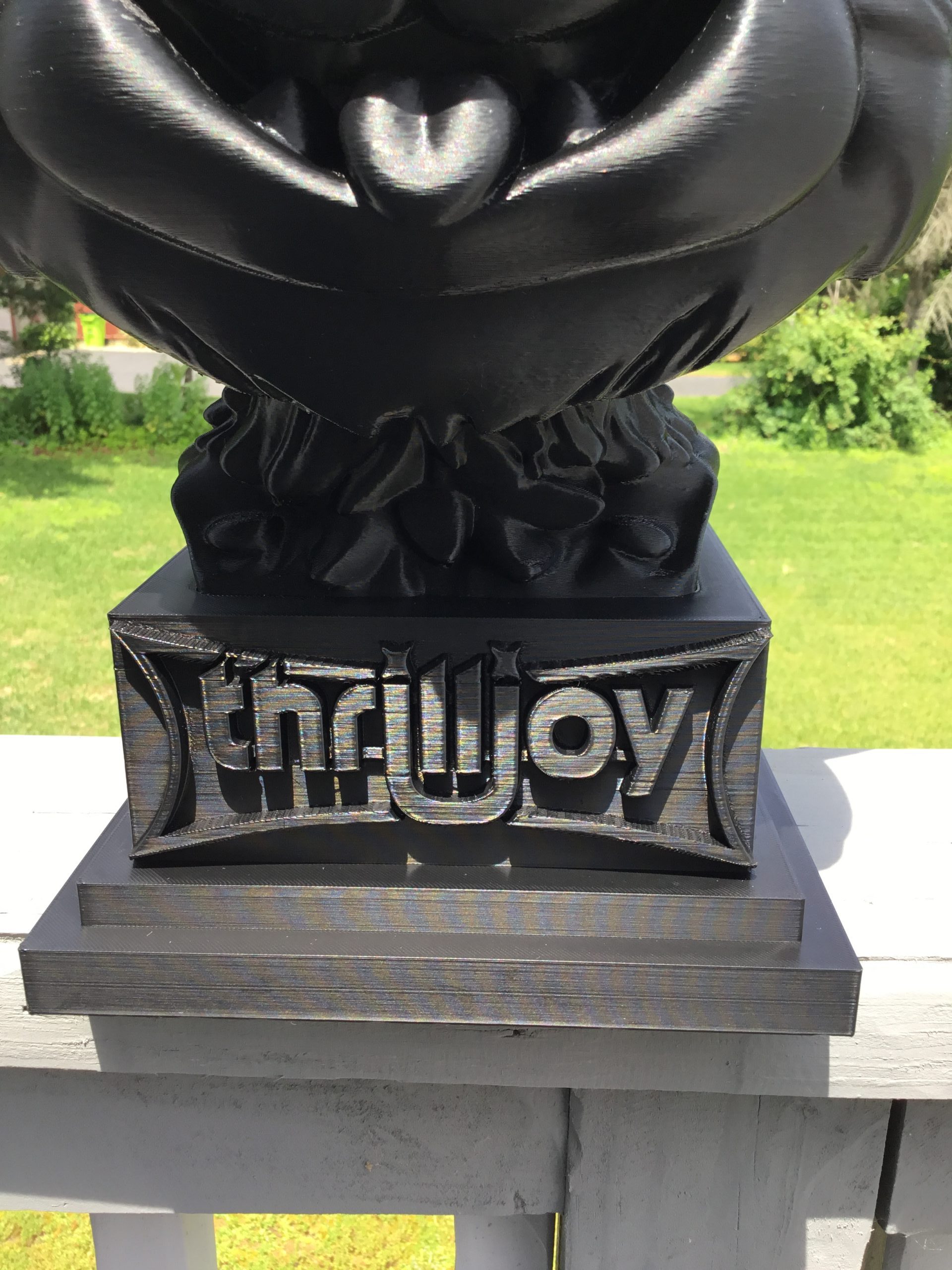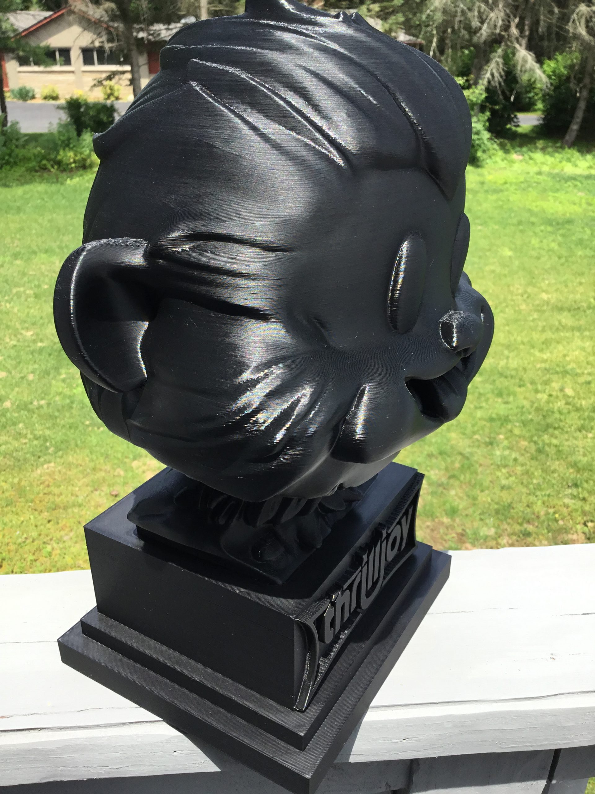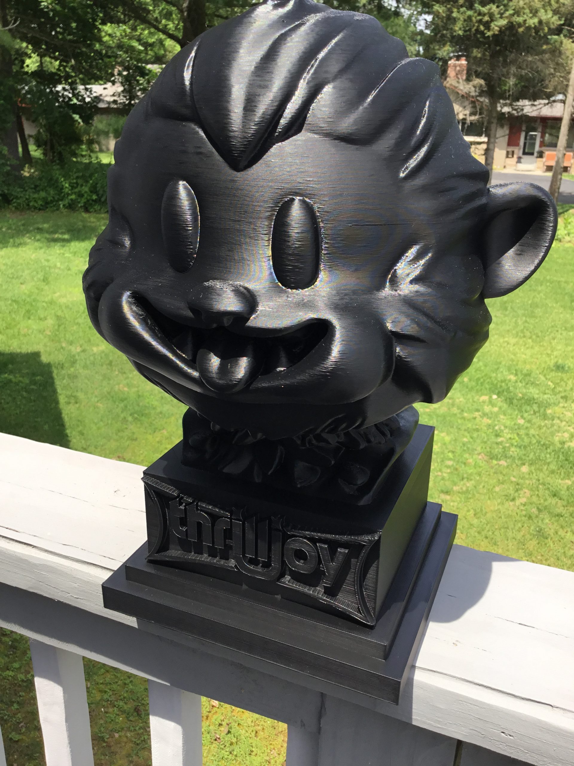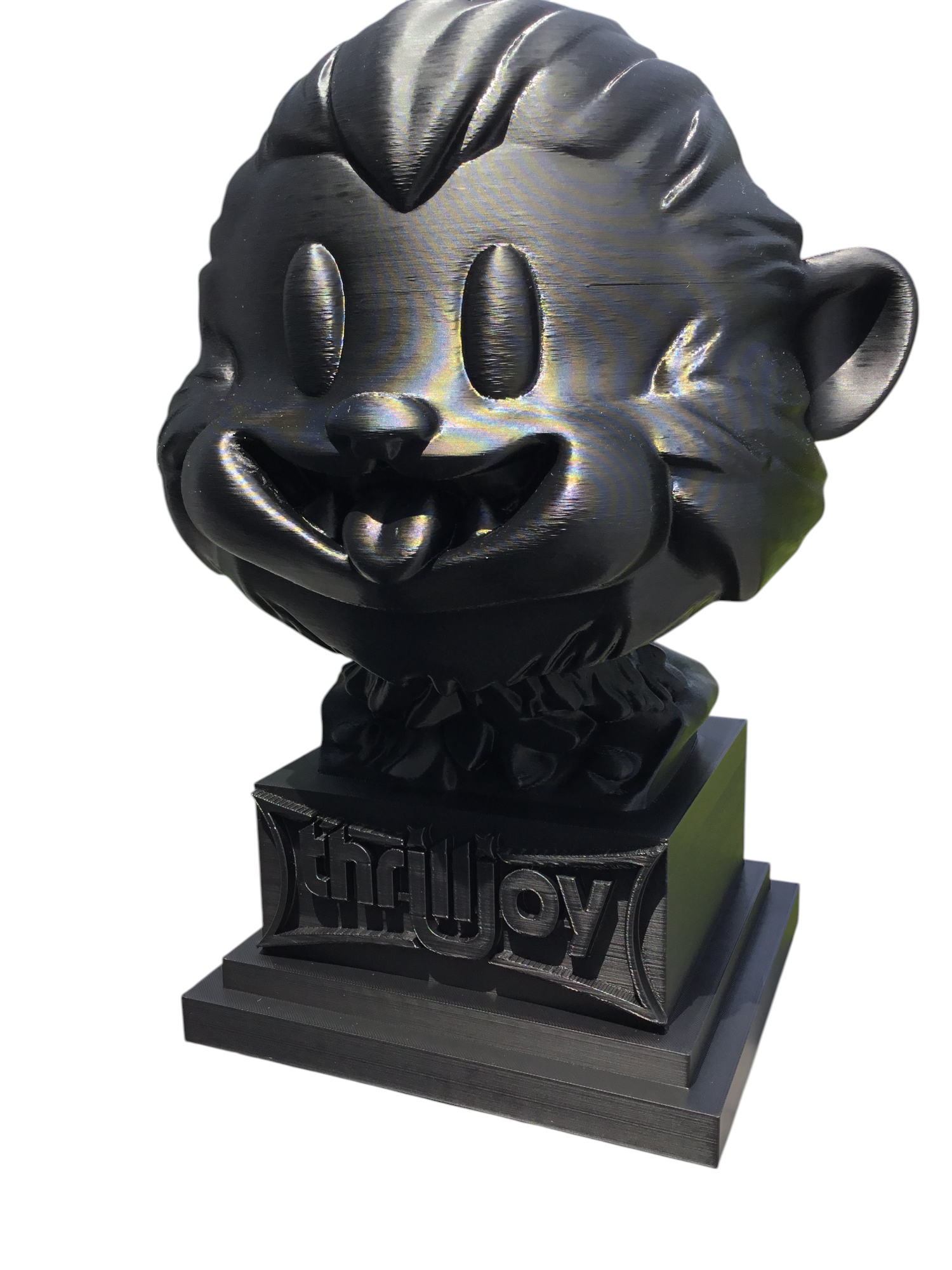 thrilljoy statue,designer toy bust,pop art sculpture,vinyl art toy,urban vinyl figure,black bust statue,large character statue,cartoon art toy,graffiti toy art,street art decor,limited edition bust,collectible sculpture,modern display statue