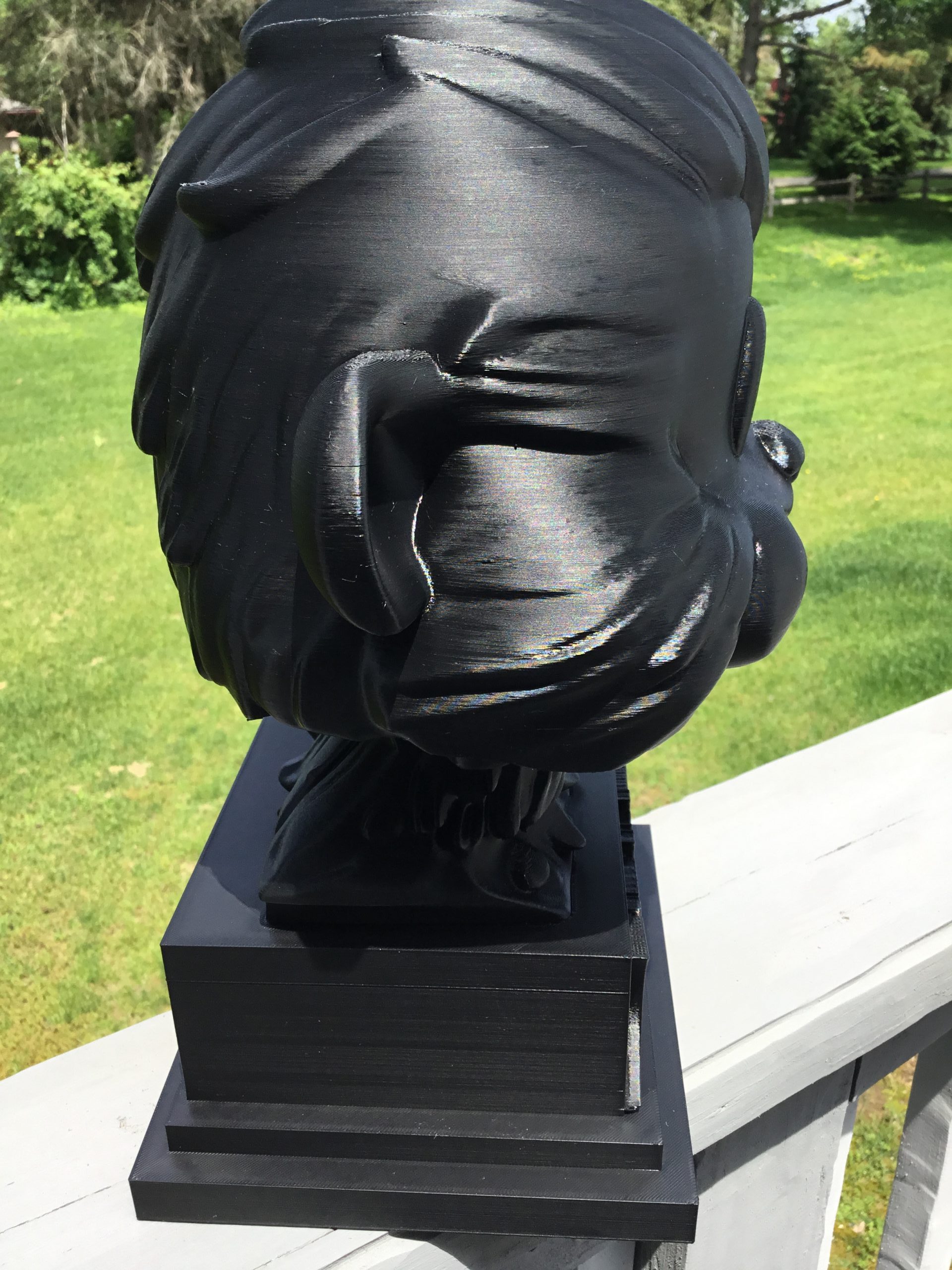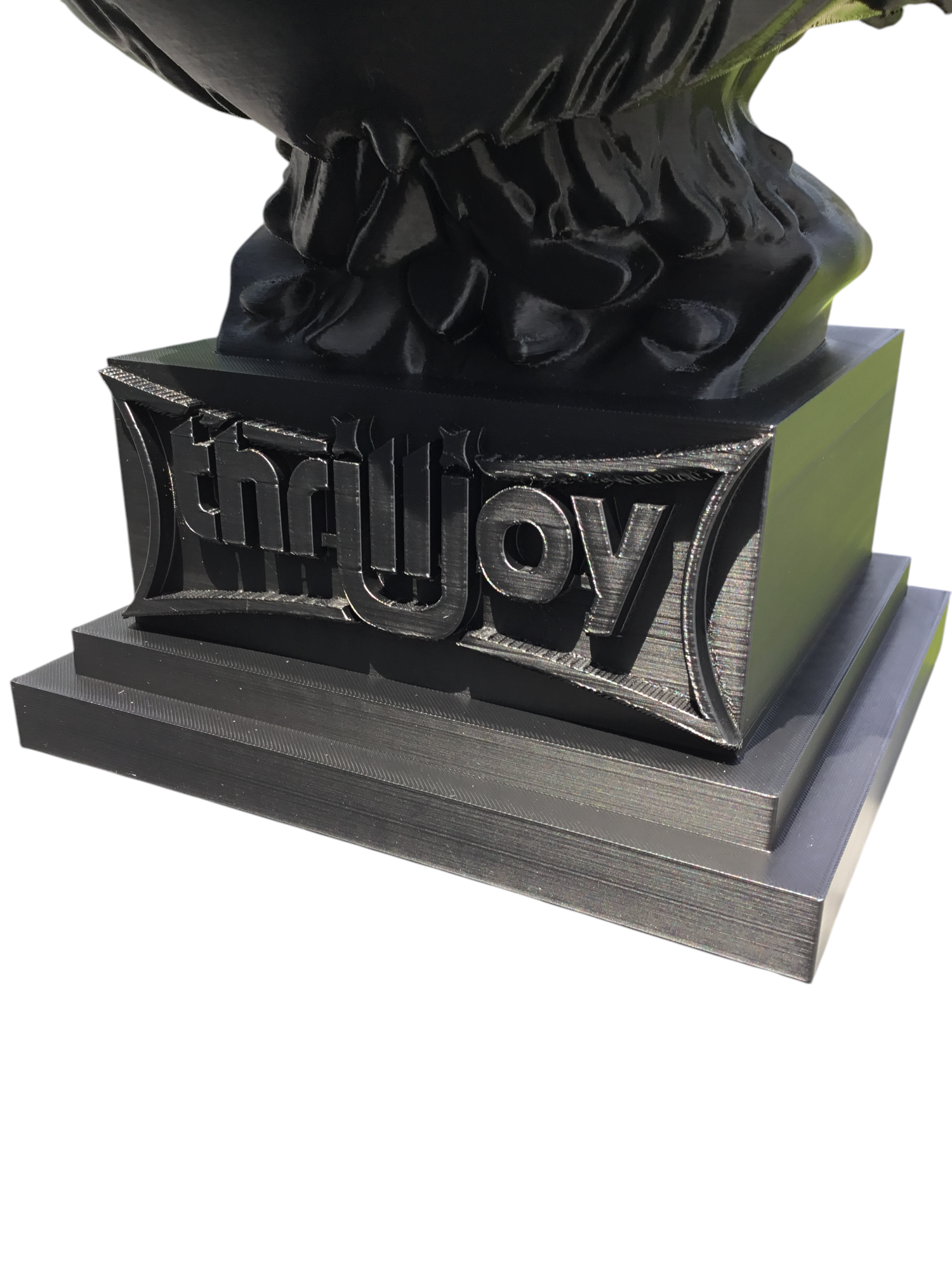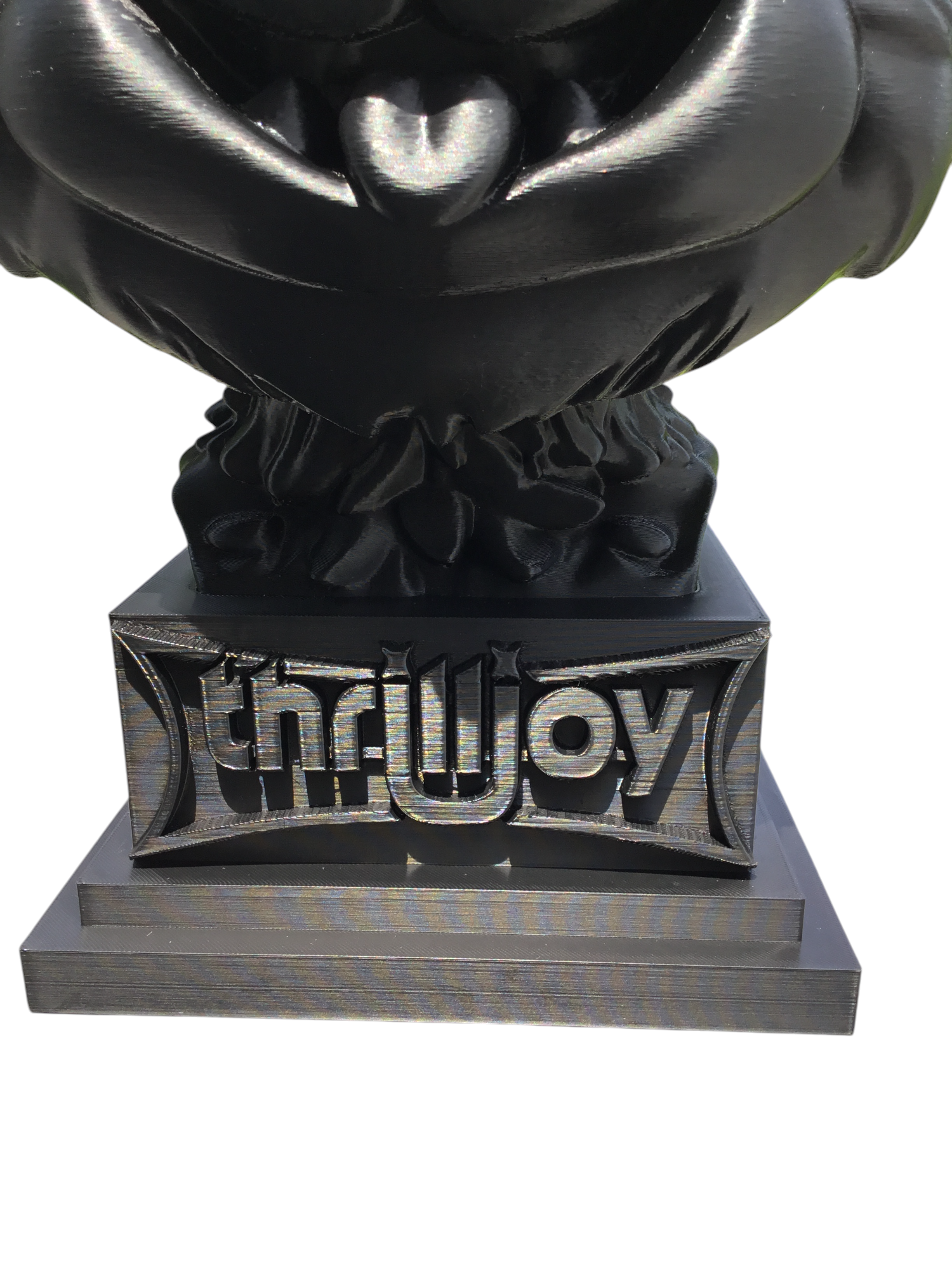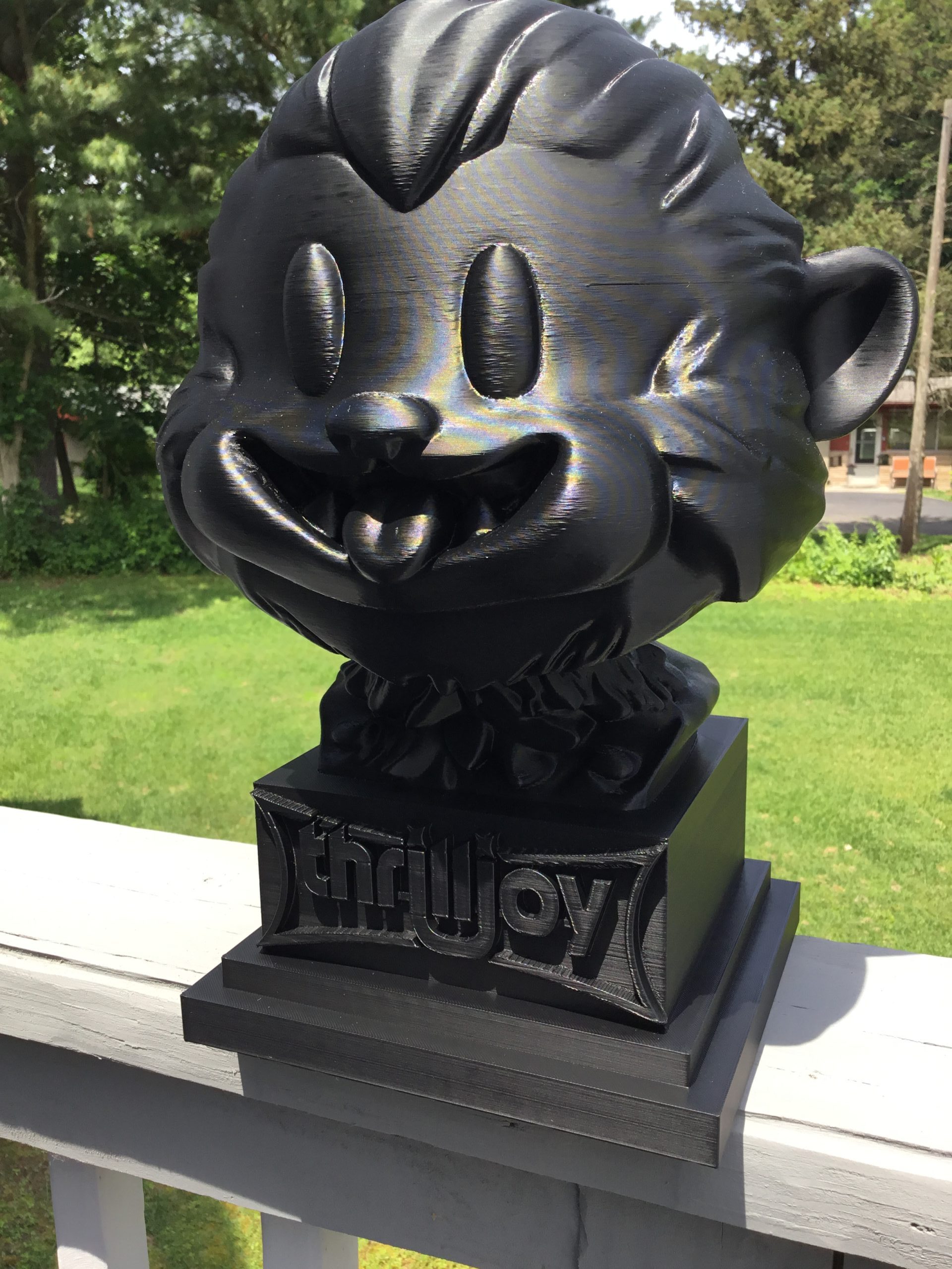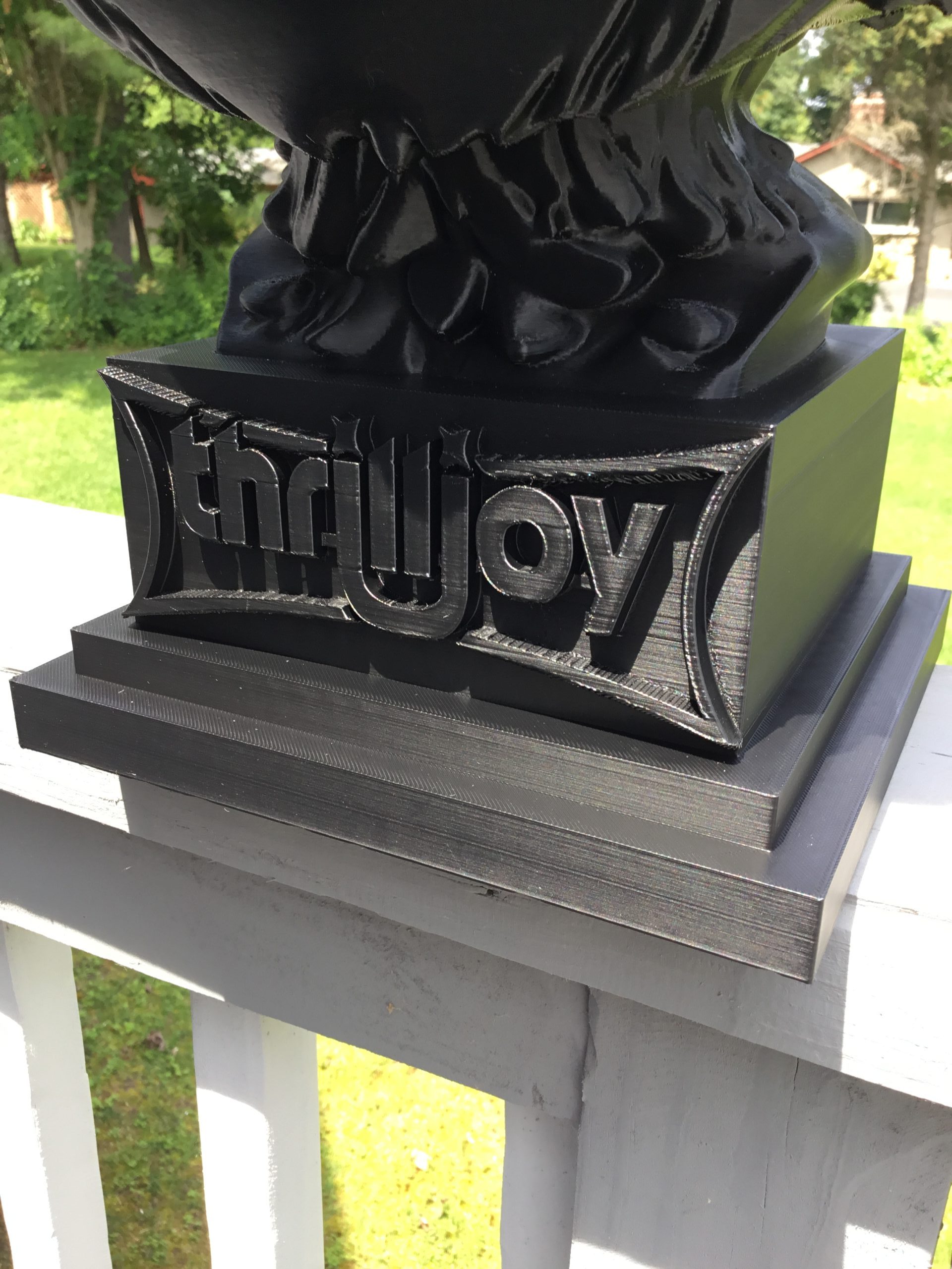 thrilljoy statue,designer toy bust,pop art sculpture,vinyl art toy,urban vinyl figure,black bust statue,large character statue,cartoon art toy,graffiti toy art,street art decor,limited edition bust,collectible sculpture,modern display statue