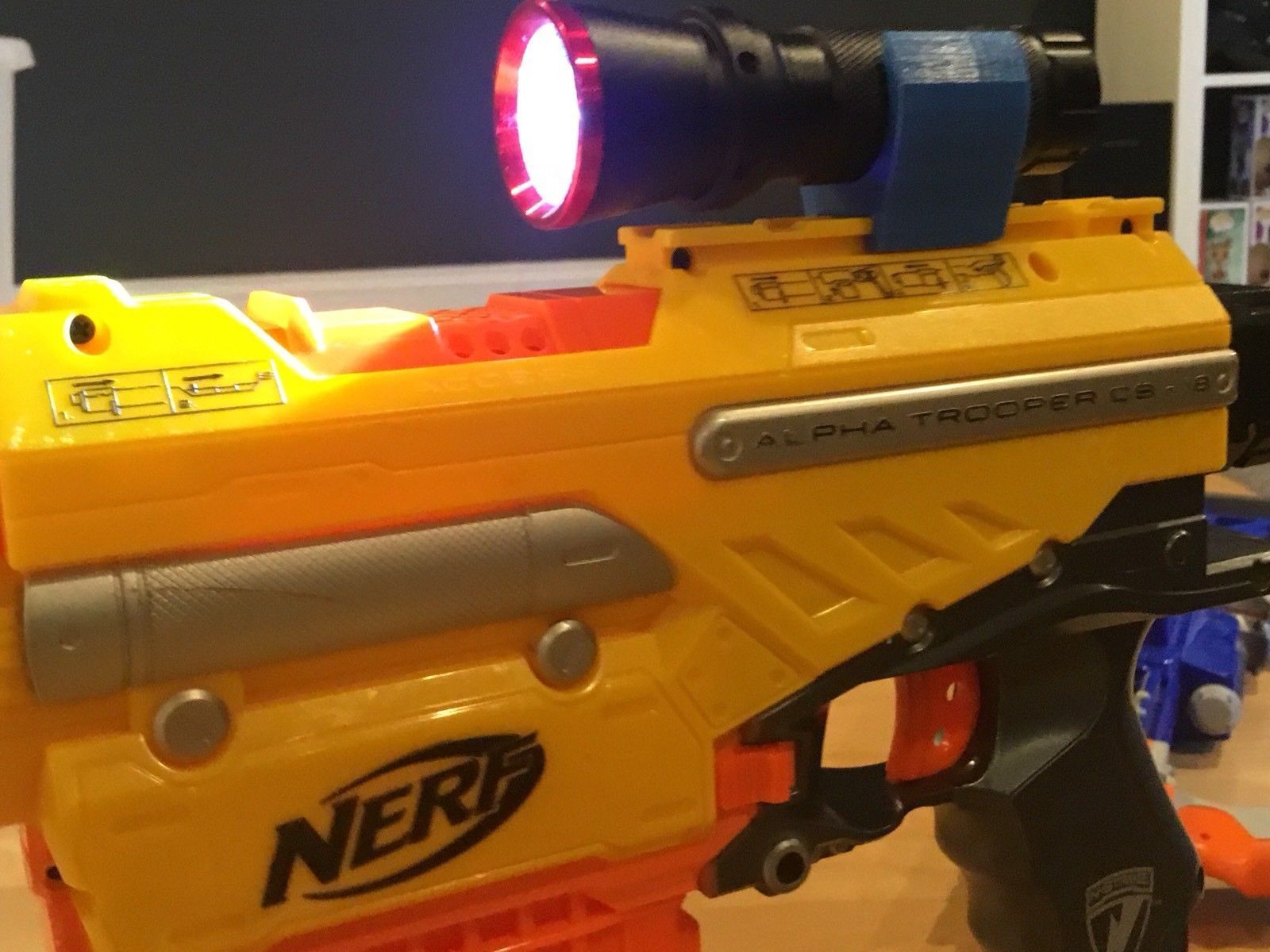 This unit will slide right on to your Nerf Guns Rail Mount. Will work on any Nerf Gun Rail Mount. This is not a Nerf Product, but a custom created product to fit your unit.