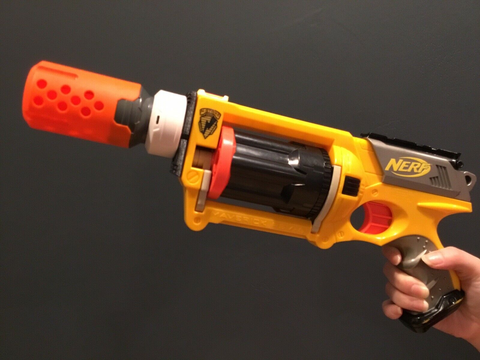 Tired of going to war with that same basic (But Great) Nerf Maverick Rev-6? Well Don’t throw it in the dusty pile of lost dart guns, its time to spruce it up with this easy SSWI Barrel Muzzle Adapter Attachment! Holy Tactics!!