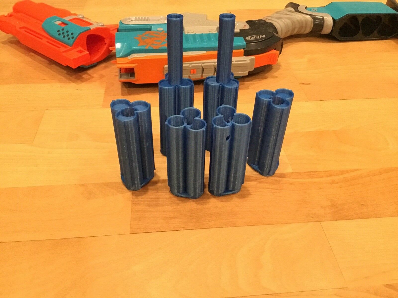 * Mega Dart Shell (These are Front Loaded). The Shell is place into the gun as the originals are, but Mega Dart is loaded from the Front Barrel of the Nerf Gun (These have been recently modded and designed to hit really nice!!