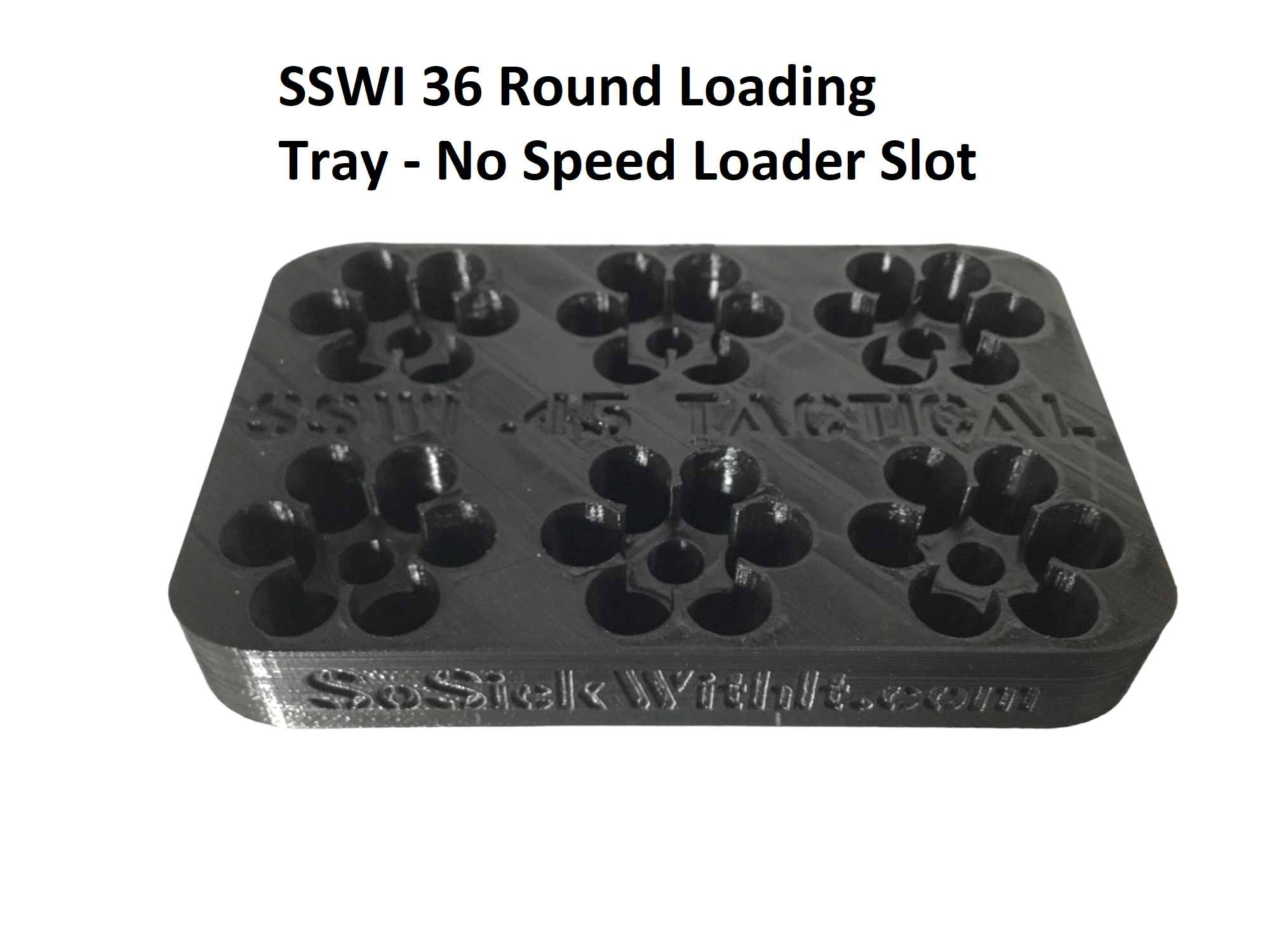 - SSWI Loading Tray No Speed Loader Slot will hold the rounds in perfect order for Accurate expedited loading. The SSWI Loading Tray will Securely hold a total of 36 Rounds in Pre-Loading Order.