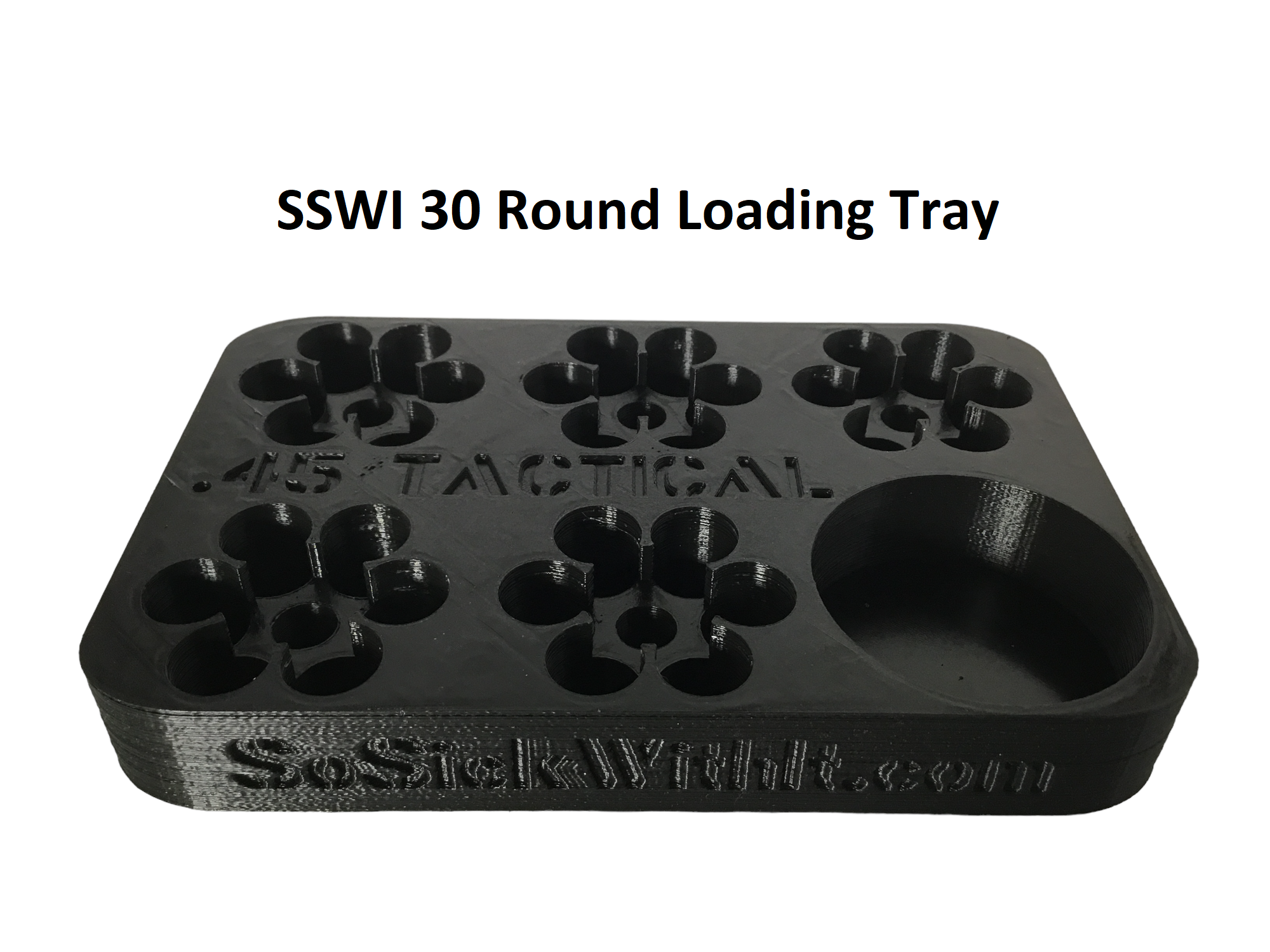- SSWI Loading Tray will hold the rounds in perfect order for Accurate expedited loading. It also contains a slot for your Speed Loader or Moon Clips. The SSWI Loading Tray will Securely hold a total of 30 Rounds in Pre-Loading Order.