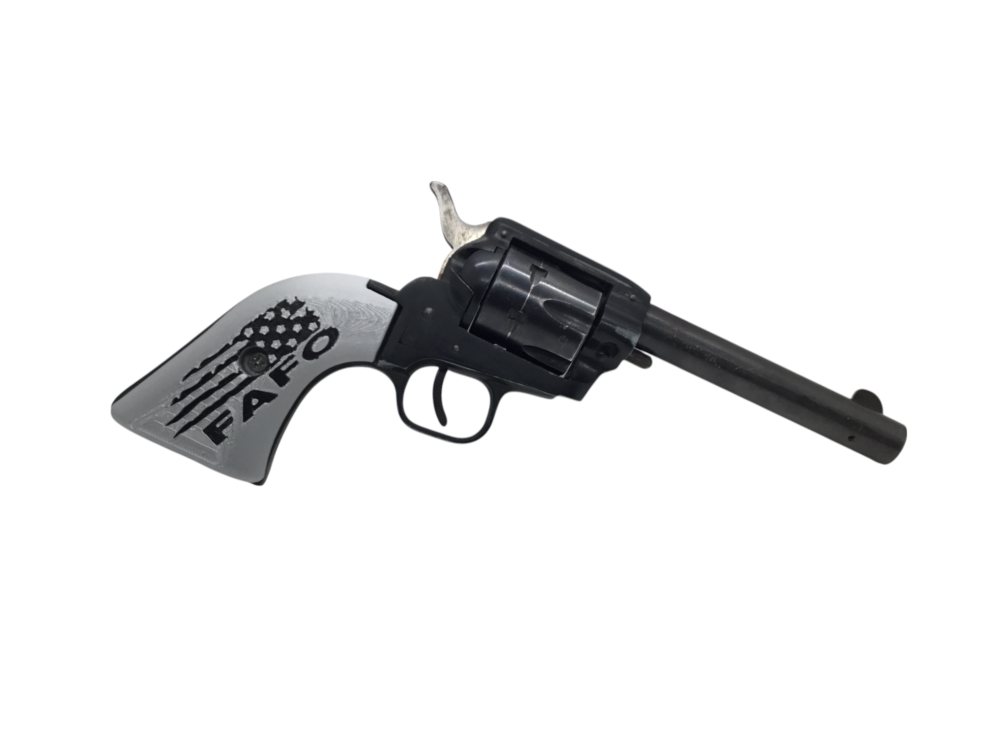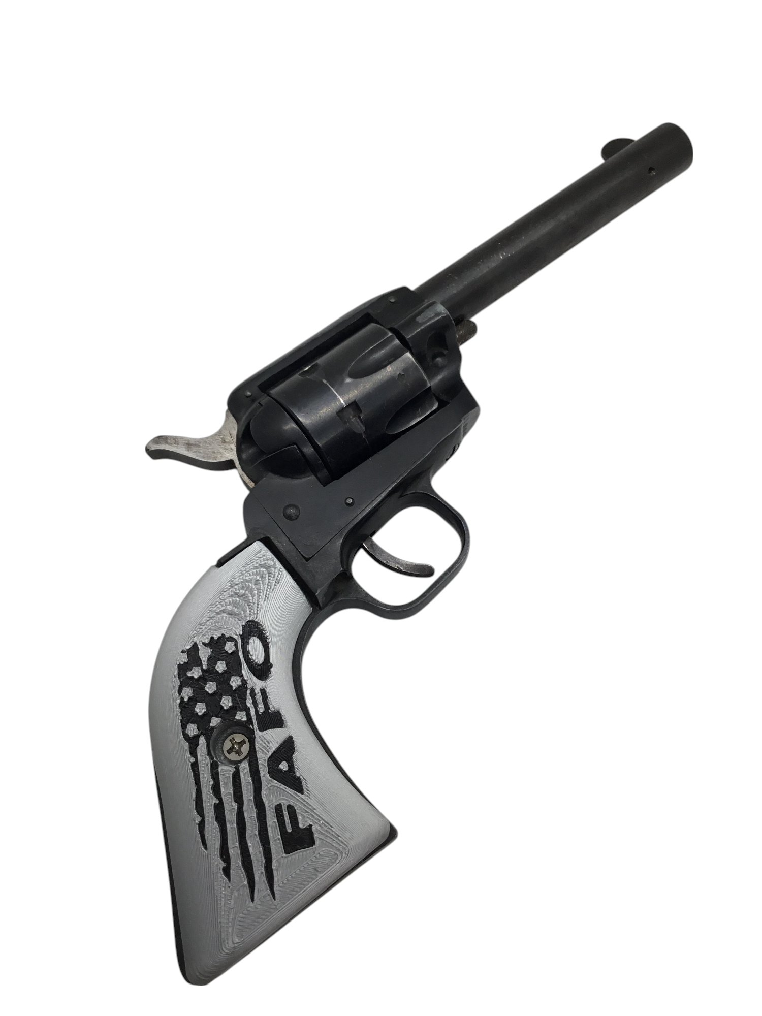 This Fits Heritage .22 Cal Revolvers – Simply unscrew existing boring grips, add these with the existing screw and Boom – You are all done!