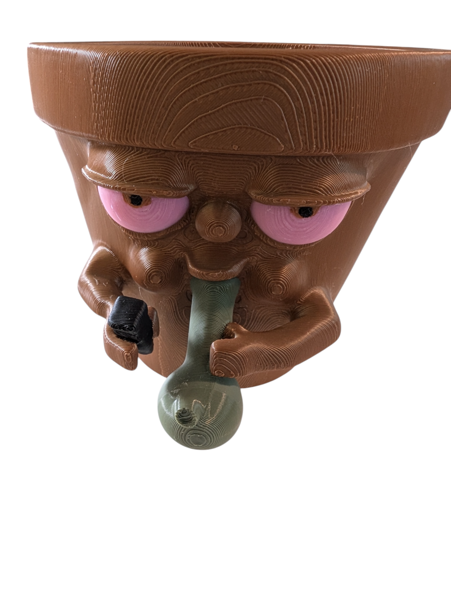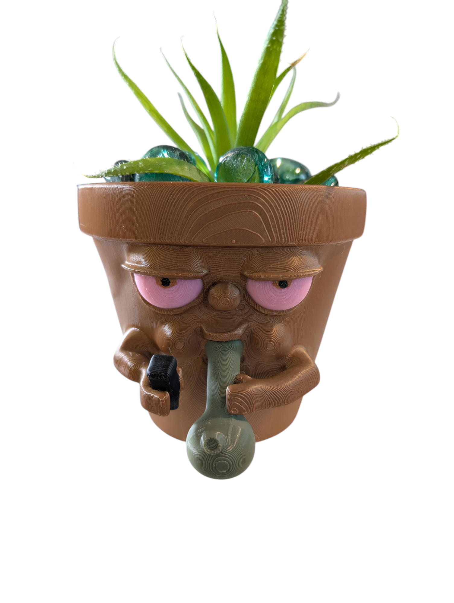 Bring a unique sense of humor to your indoor garden with this Pot Smoking Pot, a one-of-a-kind 3D printed planter that’s both functional and entertaining. Perfect for succulents, cacti, or small plants, this quirky design features a pot with a face enjoying a classic “smoking” moment—ideal for anyone who loves creative and unconventional décor.